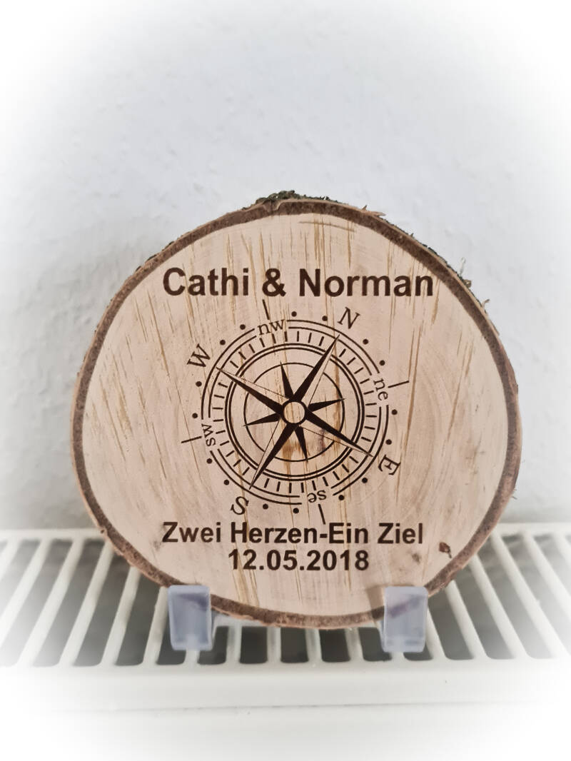 Kieferbrett und Baumscheiben mit Wunschgravur