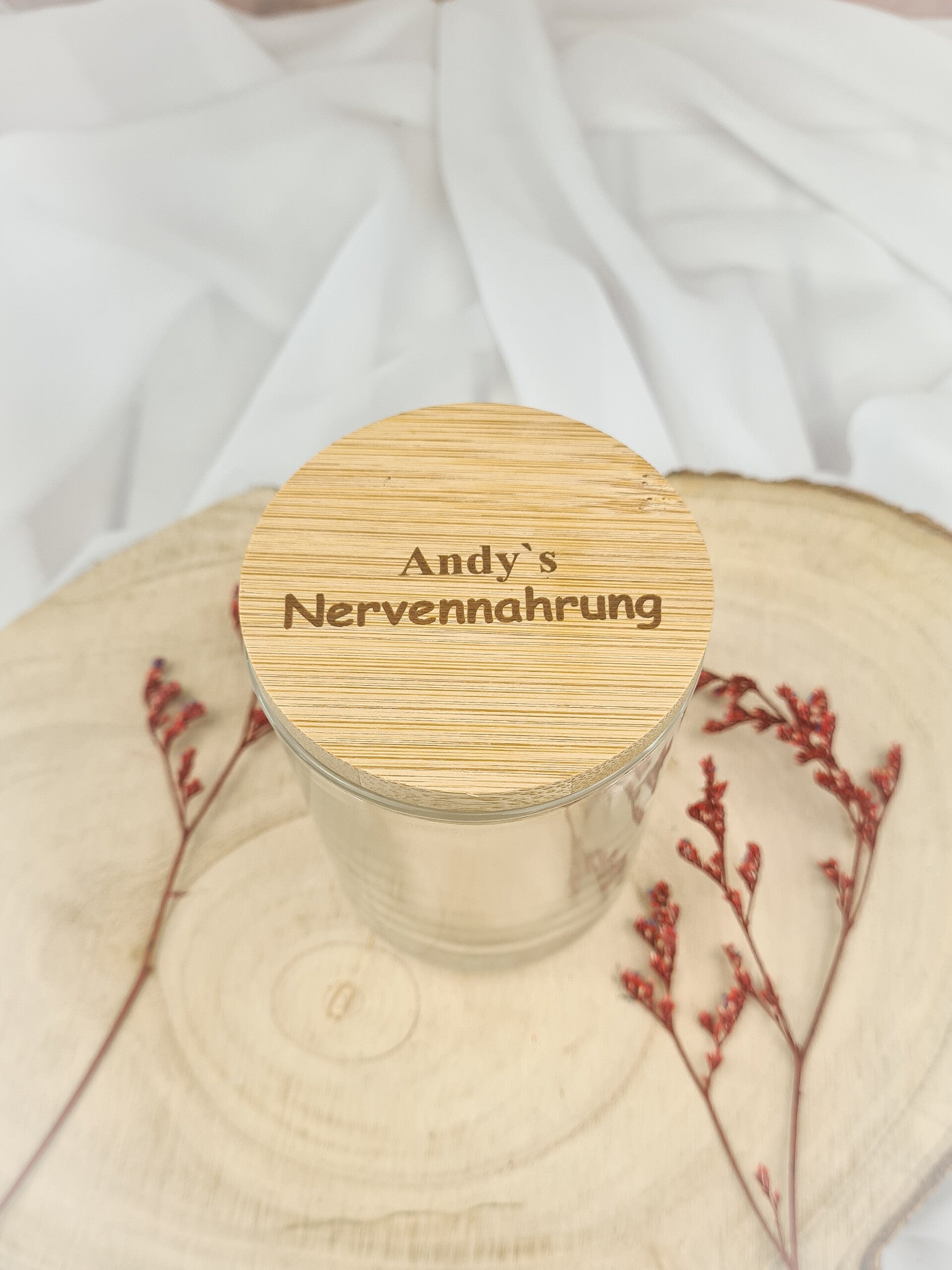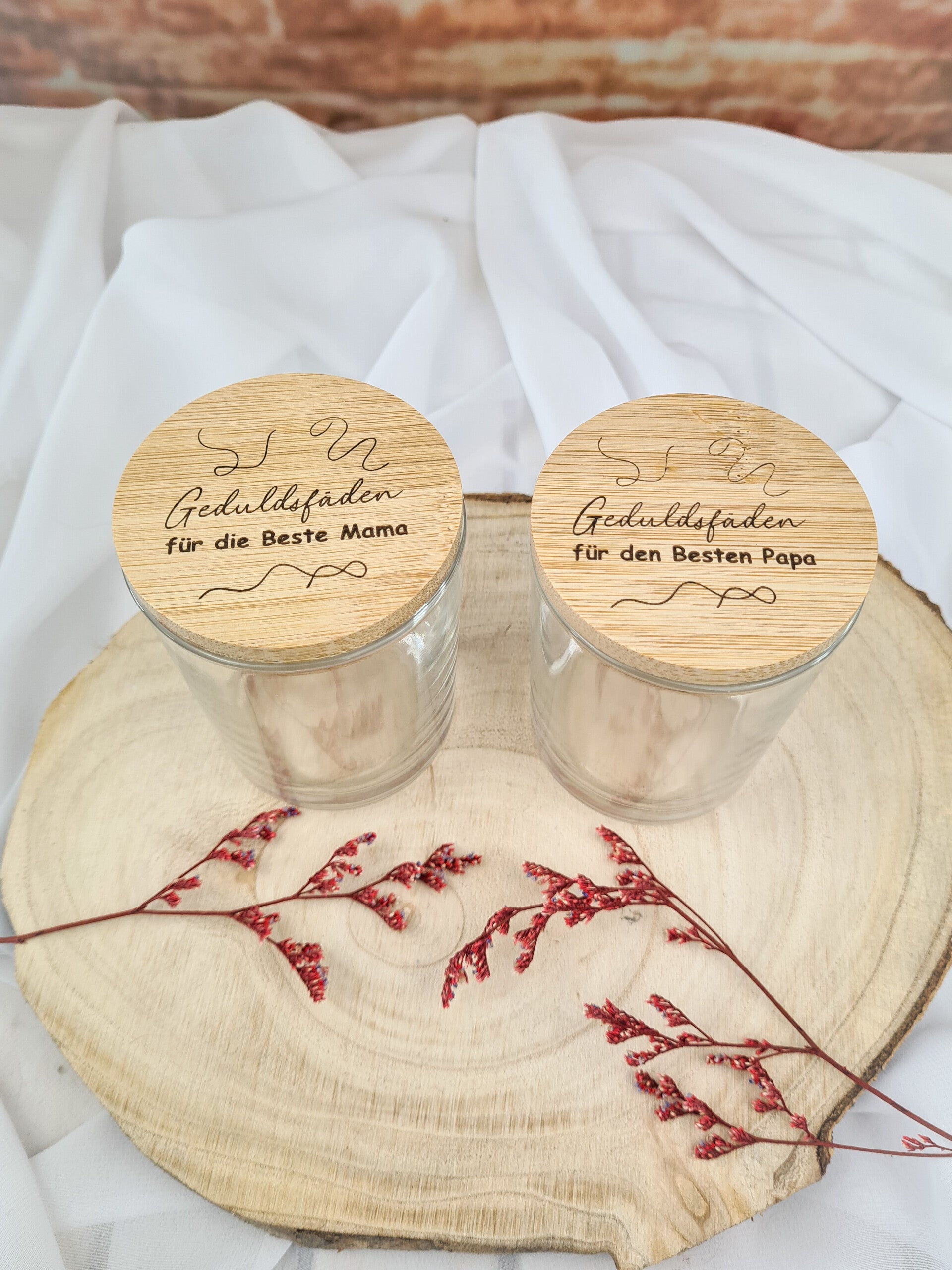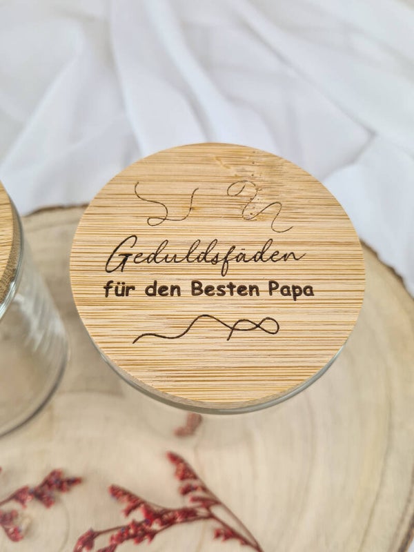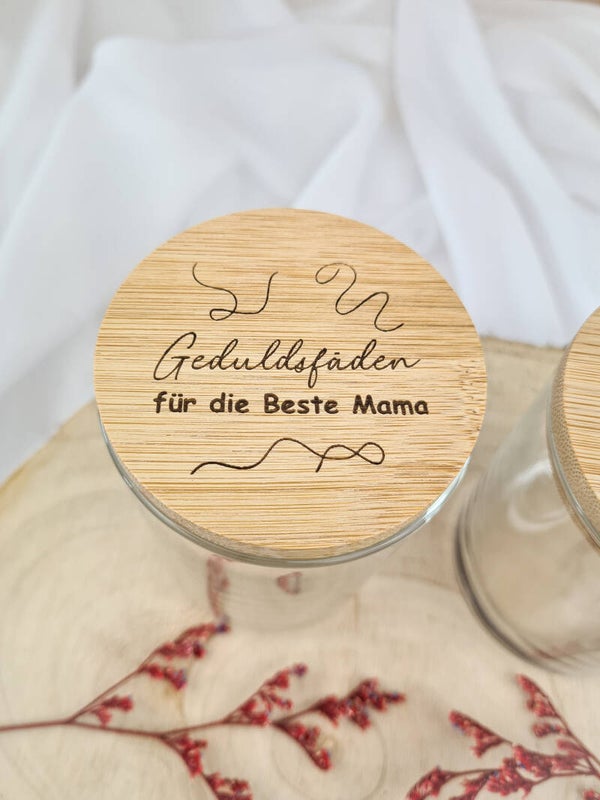 Aufbewahrungsglas mit Holzdeckel – „Geduldsfaden“ für die Liebsten