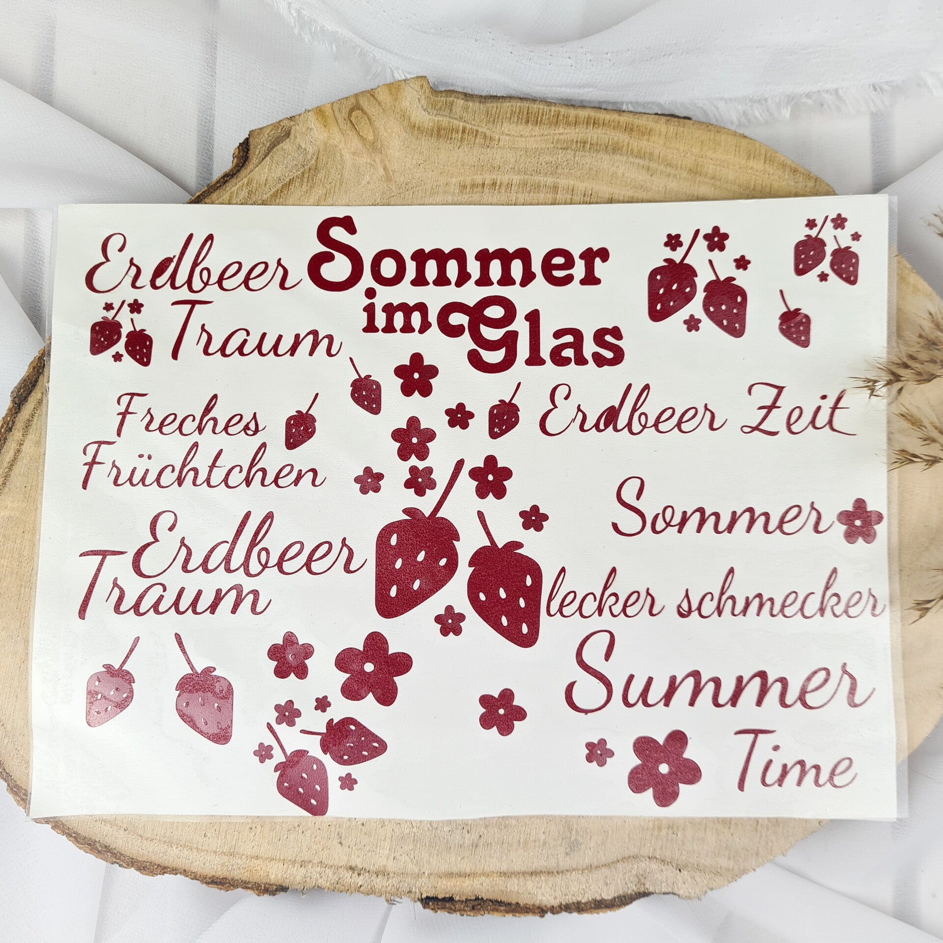 Bringe sommerliche Stimmung in dein Zuhause oder auf deine DIY-Projekte – mit unserem liebevoll gestalteten Rub-on Sticker im Erdbeer-Design und passenden Sommer-Sprüchen! Ob auf Glas, Keramik, Holz oder Raysin (Gips) – die Aufkleber lassen sich kinderleicht übertragen und sorgen für einen frischen, kreativen Look.