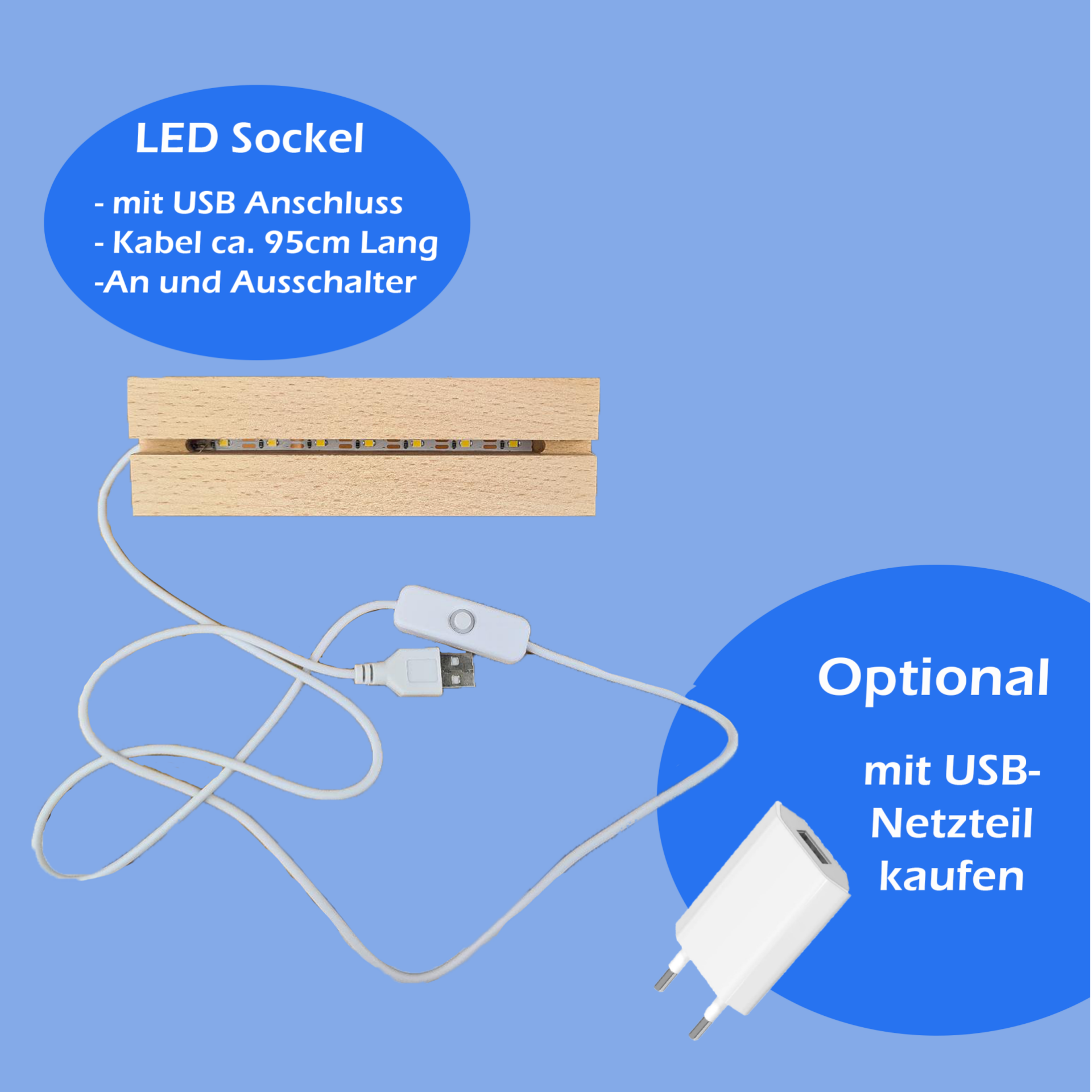Material: Hochwertiges, klares Acrylglas (4 mm) & naturbelassener Holzsockel