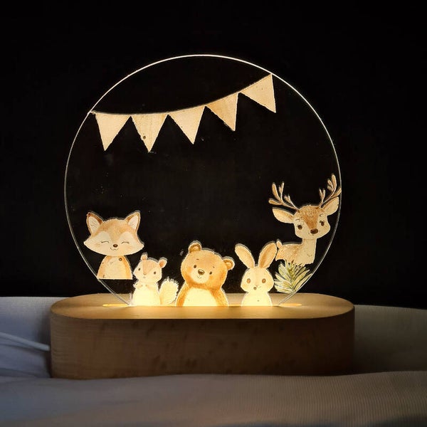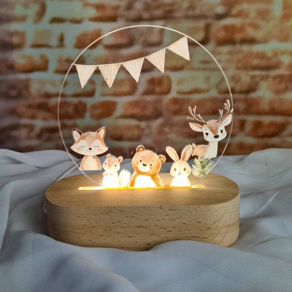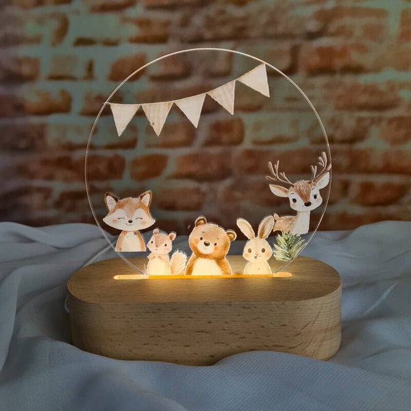 Zaubere eine warme, beruhigende Atmosphäre ins Kinderzimmer mit unserem personalisierten LED-Nachtlicht – individuell gestaltet mit niedlichen Tiermotiven und dem Namen und Geburtstag deines Kindes. Ideal als Geschenk zur Geburt, Taufe, Einschulung oder einfach für süße Träume. 💛🌙