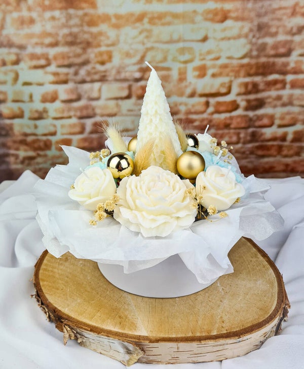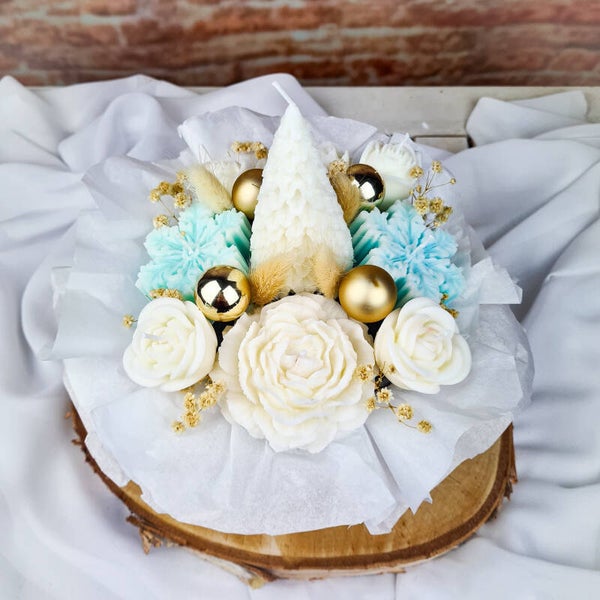 Bringe festliche Stimmung in dein Zuhause mit unserem Kerzen-Weihnachtsstrauß „Schneeflocke“ – einem einzigartigen Geschenkset aus 9 handgefertigten Sojawachskerzen. Jede Kerze ist liebevoll gestaltet und kommt in Form von Blumen, Schneeflocken und Weihnachtsbäumen. Perfekt als Weihnachtsgeschenk, Dekoration oder besondere Aufmerksamkeit für deine Liebsten.