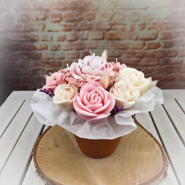 Kerzen-Blumenstrauß – das perfekte Geschenk für stimmungsvolle Momente.